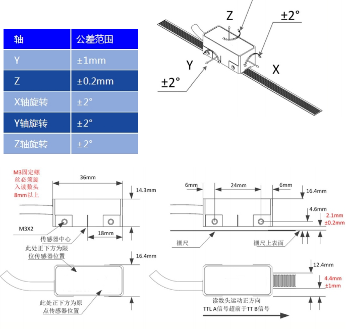 讀數(shù)頭安裝: