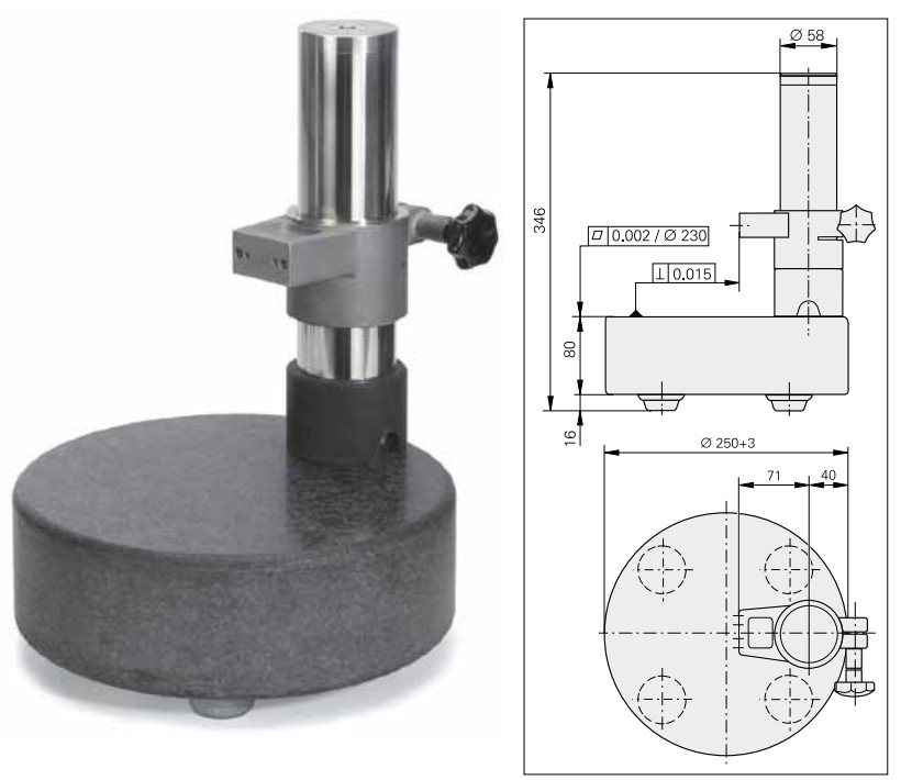 ID 244154-01 總高 346 mm 測量底座 ? 250 mm 立柱 ? 58 mm 重量 18 kg *)帶特殊支架
