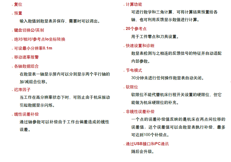 FAGOR INNOVA系列數顯表的標準配置與特點一覽表