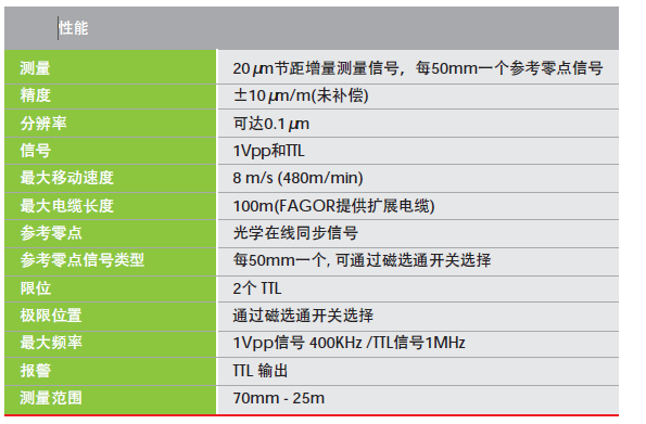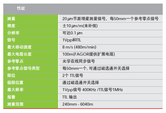 產(chǎn)品介紹開放式光柵尺EXA相當于雷尼紹RGH22/RGS20 FAGOR開放式光柵尺EXA 優(yōu)于雷尼紹RGH41敞開式光柵尺|開放式光柵尺有以下特點:1.非接觸式光柵尺用于高精度、高速場合如:直線電機、三坐標測量儀、影像全自動測量儀、PCB貼片機、雕刻機。 8.R2讀數(shù)頭其掃描頻率可達1MHZ其尺寸僅僅12MM*18MM*46MM要遠遠小于海德漢和雷尼紹的相同類型的產(chǎn)品。 非接觸式光柵尺用于高精度場合